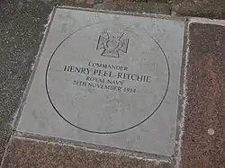 Henry Peel Ritchie VC (29 January 1876 – 9 December 1958) was a recipient of the Victoria Cross, the highest and most prestigious award for valour "in the face of the enemy" that can be given to members of the British and Commonwealth armed forces. Ritchie received the first VC awarded to naval personnel during the First World War for his actions during a raid on the German colonial harbour of Dar-es-Salaam in November 1914, which left him seriously wounded.[1]