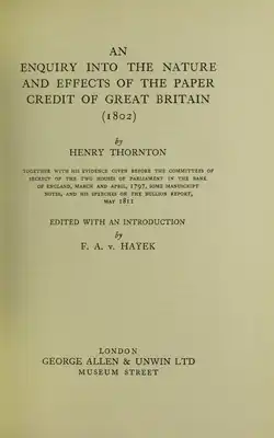 - ^ Fetter, Frank Whitson (October 1940). "Reviewed Work: An Enquiry into the Nature and Effects of the Paper Credit of Great Britain (1802) by Henry Thornton and F. A. v. Hayek". Journal of Political Economy. 48 (5): 766–767. doi:10.1086/255625. JSTOR 1825524.