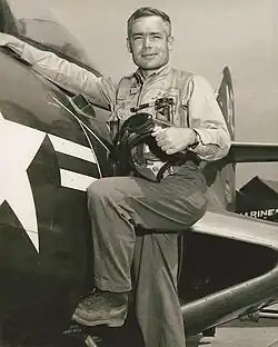 Hise pictured with a Grumman F9F Panther, Korea c. 1952