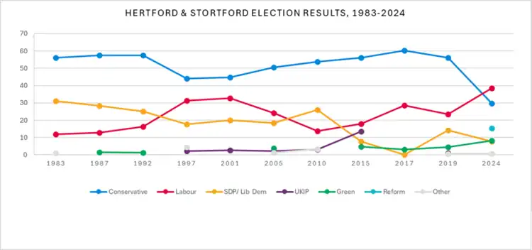 - ^ "'Hertford and Stortford', June 1983 up to May 1997". ElectionWeb Project. Cognitive Computing Limited. Archived from the original on 12 March 2016. Retrieved 11 March 2016.