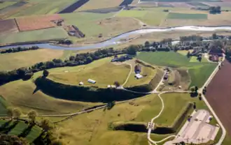 Aerial view of the Heuneburg on the Danube with today's open-air museum