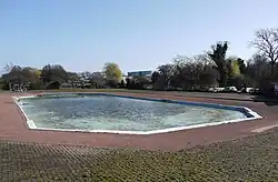 Plans for development of the lido were agreed in 1932[5] and the lido opened on 24 July 1935.[6] The architect for the lido was Joseph Parkin.[7] The pool originally used seawater, converting later to freshwater, and the lido design included two large fountains which have been retained but are no longer used.[8][9] The Main Pool and changing facilities were designed for the use of 768 adults and 180 children with accommodation for around 1000 spectators. In 1936 the Lido was visited by the British diving team from 1936 Summer Olympics who gave a demonstration on 31 August[10] During World War 2 the main pool was closed to the general public and was given over to the use of the various military units in the area.[11] Between 1946 and 1951 a miniature railway ran along the lido site.[12] In 1974 the Lido was used as a set for the Bernie's Holiday Camp scene in the film Tommy.[13] Later in the 70s the lido's diving platforms were removed.[14] In 1995 the Lido lent its name to the Vulcan Software management simulation game Hillsea Lido.[15]