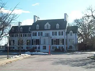 Hilton is a historic home located on the campus of The Community College of Baltimore County in Catonsville, Baltimore County, Maryland. It is an early-20th-century Georgian Revival–style mansion created from a stone farmhouse built about 1825, overlooking the Patapsco River valley. The reconstruction was designed by Baltimore architect Edward L. Palmer Jr. in 1917. The main house is five bays in length, two and a half stories above a high ground floor, with a gambrel roof. The house has a 2+12-story wing, five bays in length, with a gabled roof, extending from the east end; and a two-story, one-bay west wing. The roof is covered with Vermont slate. The house features a small enclosed porch of the Tuscan order that was probably originally considered a porte cochere.[2]