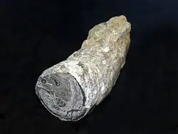 Hippurites cornuvaccinum is a fossil saltwater clam, an extinct marine bivalve mollusk in the family Hippuritidae. These fossils occur in the Late Cretaceous deposits of southern Europe.