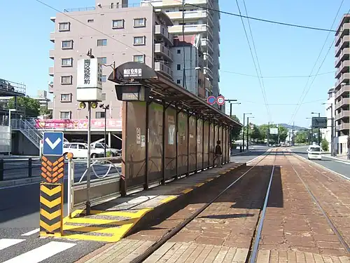 Minami-kuyakusho-mae is a Hiroden station (tram stop) on Hiroden Hijiyama Line, located in front of Hiroshima Minami Ward Office, in Hijiyama-honmachi, Minami-ku, Hiroshima.