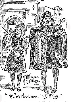 The piece was expected to draw the public solely on the strength of the return of George Grossmith after an absence of almost a decade from the Savoy Theatre. Grossmith was well and fondly remembered for his creation there of the comedy roles in the famous series of Gilbert and Sullivan operas, and during his years away, he had become the most popular solo piano entertainer in the country.[3] The Savoy audience was eager to see him perform together on stage with his successor in the Savoy opera roles, Walter Passmore. Rehearsals began in December 1896, an unusually long rehearsal period for the Savoy, but Mackenzie later recalled that even the company felt that the work was not wanted.[4] London's leading stage director, Charles Harris, was engaged, but he died a few days before the opera premiered, leaving the Cartes to finish his work. Richard D'Oyly Carte took ill, leaving the final arrangements to his wife, Helen. The Savoy's usual choreographer, John D'Auban arranged the dances.