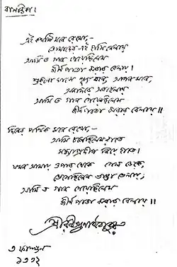 A poem written by Rabindranath Tagore for a magazine of Jagannath Hall