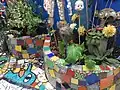 Wright sources the materials used in the sculptures and mosaics both at flea-markets, and also through donations from visitors to the museum.[1]