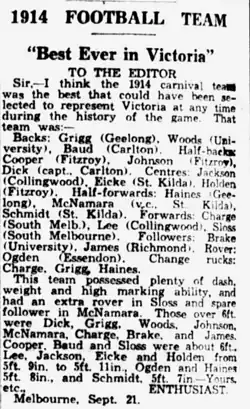 3. ^ The Victorian Team, The (Adelaide) Chronicle, (Saturday, 22 August 1914), p.31.