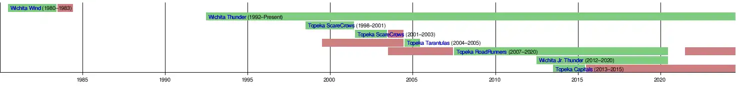 Atlanta CapitalsWichita Jr. ThunderTopeka RoadRunnersTopeka TarantulasTopeka ScareCrowsTopeka ScareCrowsWichita ThunderWichita Wind