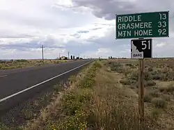 State Highway 51 (SH-51) is a state highway in southwestern Idaho from Mountain Home south to the Nevada border, where it continues as State Route 225 to Elko. It is the major north–south road in Owyhee County.[2]