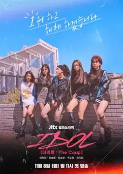 Idol: The Coup[3] (Korean아이돌: 더 쿠데타) is a 2021 South Korean television series directed by No Jong-chan and starring an ensemble cast featuring Ahn Hee-yeon, Ahn Sol-bin, Han So-eun, Chu So-jung, Kim Ji-won, Kwak Si-yang and Kim Min-kyu. Written by Jung Yoon-jung, it tells the story of a "failed" K-pop idol girl group who need just one shot at success for them to disband.[4] It aired from November 8 to December 14, 2021 on JTBC's Mondays and Tuesdays at 23:00 (KST).[5][6][7] It is also available simultaneously with Korea on iQIYI for streaming worldwide.[8]