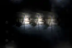 Passengers is an urban festival, which has been running since 2007. Different artistic projects intersect in the urban space.[2] The first event took place in a passenger tram line, exceptional tram, which was turned into a Camera obscura. The passenger could see the unusual movie made up of views of their own city. This Tram Obscure was designed by Simon Lee. Another part of this edition was Küchenmonument of Raumlabor Berlin and Plastique Fantastique, which was an ephemeral architectural object. Küchenmonument reorganised public space.