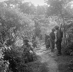 The United Nations Security Council brokered the Renville Agreement in an attempt to rectify the collapsed Linggadjati Agreement. The agreement was ratified in January 1948 and recognised a cease-fire along the so-called 'Van Mook line'; an artificial line which connected the most advanced Dutch tanks' positions.[80] Many Republican positions, however, were still intact behind the Dutch lines. Some Republican militias, particularly laborers, peasants, and student troops, just couldn't leave thus must live (and operate) behind Renville Line. The agreement also required referendums to be held on the political future of the Dutch-held areas. The apparent reasonableness of Republicans garnered much important American goodwill.[78]