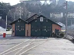 Following the conversion of the Stubai Valley Railway to direct current working in 1983, the station was no longer needed and the trackage in front of the shed was lifted. The Tyrolean Museum Railways – then a newly founded society – was given the building in order to preserve the vehicles for museum purposes. The Localbahn museum was established in the old stationmaster's office and waiting room. Over the years a new array of tracks was laid in the station yard and a connexion to the Innsbruck tram network (of the Innsbruck Transport Company) installed. In 2000, the shed was given a major overhaul.