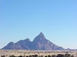 An inselberg or monadnock (/məˈnædnɒk/ mə-NAD-nok) is an isolated rock hill, knob, ridge, or small mountain that rises abruptly from a gently sloping or virtually level surrounding plain. In Southern Africa, a similar formation of granite is known as a koppie, an Afrikaans word ("little head") from the Dutch diminutive word kopje.[1]