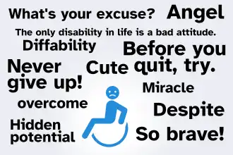 Inspiration porn is the objectification of disabled people as inspirations to non-disabled people on the basis of their life circumstances.[1] The term inspiration porn is by analogy with pornography, in that the material is perceived as objectifying disabled people for the benefit or gratification of the non-disabled.[2][3] Inspiration porn may be seen as a form of ableism.[4] An example of inspiration porn might be a photo of a child with a disability taking part in an ordinary activity, with captions targeted towards non-disabled people such as "your excuse is invalid", "before you quit, try" or "they didn't let their disability stop them".[1]
