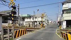 The single-lane level crossing immediately to the east of the station