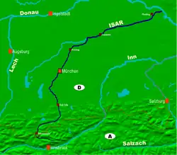 the Isar River was economically exploited through multifunctional use. Over forty hydropower plants were built on the Isar to electrify Bavaria.[5]