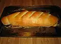 Perhaps a bit closer to French bread in composition and appearance, American "Italian bread" is a lean white bread, often braided and covered in sesame seeds, with a thin but usually crisp crust and a soft crumb. American "Italian bread" does not particularly resemble many traditional Italian bread forms, but is very popular in both loaf form and roll form, where it is often closely associated with sandwich making. A regional variety of this is Scali. |