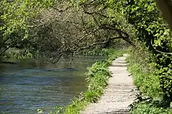 The Itchen Navigation below Withymead Lock, showing the footpath