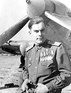 Ivan Kharlampovich Mikhailichenko (Russian: Иван Харлампович Михайличенко, Ukrainian: Іван Харлампійович Михайличенко; 2 September 1920 – 2 June 1982) was an Il-2 pilot in the Soviet Air Forces during the Second World War who was twice awarded the title Hero of the Soviet Union. After the war he flew jet fighters and became a flight instructor.[1]