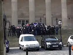February 2016 protest in front of St George's Hall, Liverpool, by the North West Infidels. Renshaw is fourth from the right.
