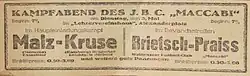 German advert for the Jewish Boxing Club's Maccabi fight night featuring the Malz-Kruse match.