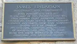 James Finlayson (29 August 1772 Penicuik Scotland18 August 1852 Edinburgh Scotland) was a British Quaker who, in effect, brought the Industrial Revolution to Tampere, Finland, founding in 1820 the Finlayson company.[1][2][3]