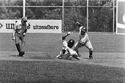 Jang Hyo-jo tagged out against Japan at the 1978 Haarlem Baseball Week