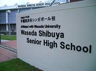 The Japanese School Singapore serves elementary and junior high students and the Waseda Shibuya Senior High School in Singapore (formerly Shibuya Makuhari Singapore School) serves high school students. Both schools hold annual festivals open to members of the public who are interested in Japanese culture.