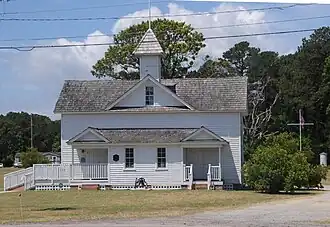 Jarvisburg Colored School is a historic school building for African-American students located at Jarvisburg, Currituck County, North Carolina. First built as a one-room school in 1868 on land donated by Mr. William Hunt Sr, an educated African American farmer in Currituck, His gift of land included property for a church. Replaced in the 1890s with a two-room building and again expanded in 1911 to its current size. It was in service from 1868 until 1950 when Currituck opened a Consolidated School and closed all the small African American county schools. The Jarvisburg Colored School is a two-story, frame building built of cypress wood with Queen Anne style design elements. It has a gable roof and features a pyramidal roofed bell tower with the original four foot wooden spire. It last housed a school in 1950.[2] Today, the Jarvisburg Colored School serves as a Museum to share the stories of former students and histories of all the Colored Schools in Currituck County, North Carolina.
