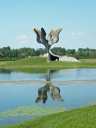 Stone Flower (Croatian: Kameni cvijet; Serbian: Камени цвет, Kameni cvet) is a monument to the victims of the Ustasha genocide of the Serbs during the World War II in Yugoslavia, located in Jasenovac, Croatia. Designed by Bogdan Bogdanović and unveiled in 1966, it serves as a reminder of the atrocities perpetrated in the Jasenovac concentration camp.