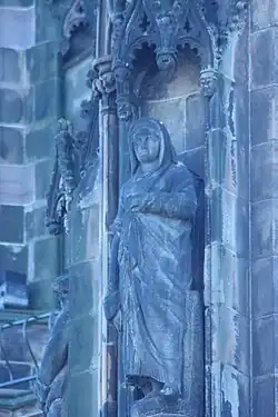 A statue of Jeanie Deans is one of the principal sculptures on the Scott Monument on Princes Street in Edinburgh. It was sculpted by William Brodie and stands on the lower tier of the north-east buttress.[14]