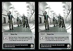 Combat is resolved on the basis of character and starship battles. The principle of drawing Destiny (drawing a card from deck and using the Destiny number printed on it) has been retained from Star Wars CCG, although the Destiny number applies solely to weapon targeting.