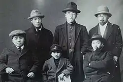 Jiichirō Matsumoto was born on 18 June 1887 in the Buraku community of Kanehira, just outside the city of Fukuoka.[9] He was the fifth and final child in a poor family that made a living from farming and producing components for traditional footwear.[9] He attended a primary school composed entirely of Buraku children, but when he moved to the integrated Sumiyoshi Upper Primary School at age eleven, he began to directly experience discrimination from teachers and other students. Being large for his age, he often fought back and usually won, which gave him a lasting sense of confidence and the importance of resistance.[10] A formative incident occurred when he was twelve; after local police unjustly arrested his father and him following a dispute in their village, Matsumoto came to view the authorities as enemies of the weak.[2]