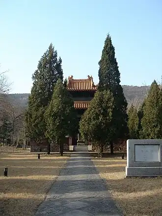 2. ^ Wang, Yonglin (2011). "Ming Imperial Tombs in Other Provinces". Thirteen Imperial Tombs of the Ming Dynasty. Peking: Foreign Languages Press. p. 203. ISBN 978-7-119-06755-1.