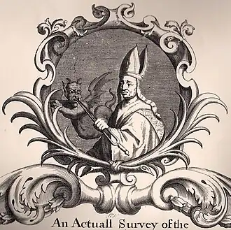 Map of the parish of St Dunstan, Stepney (cartouche). "St Dunstan was a goldsmith, so always had heated implements to hand."[50]