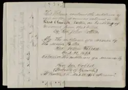 On 25 October 1636, seven ministers gathered at the home of Cotton to confront the developing discord, holding a private conference which included Hutchinson and other lay leaders from the Boston church.[90][91] Some agreement was reached concerning the theological differences, and Cotton "gave satisfaction" to the other ministers, "so as he agreed with them all in the point of sanctification, and so did Mr. Wheelwright; so as they all did hold, that sanctification did help to evidence justification."[90] The agreement was short-lived, and Cotton, Hutchinson, and their supporters were accused of a number of heresies, including antinomianism and familism. Antinomianism means "against or opposed to the law" and theologically means that a person considers himself not bound to obey any moral or spiritual law. Familism is named for a 16th-century sect called the Family of Love; it teaches that a person can attain a perfect union with God under the Holy Spirit, coupled with freedom from both sin and the responsibility for it.[92] Hutchinson, Wheelwright, and Vane were antagonists of the orthodox party, but Cotton's theological differences from the colony's other ministers were at the center of the controversy.[93]