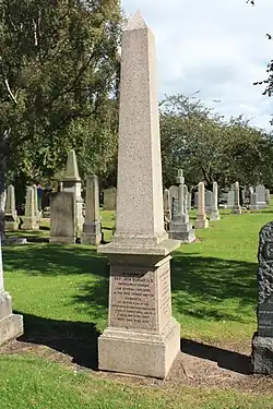 He is buried under a large obelisk in the north-east section of the Grange Cemetery in Edinburgh. His tombstone refers to him as "an eminent scholar and metaphysician, a profound theologian, a man of tender piety and of a lowly loving spirit."