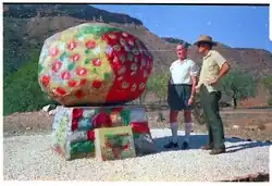 An appropriate boulder could not be found nearby Alice Springs, and the surrounding MacDonnell Ranges, and one was chosen from the Karlu Karlu / Devils Marbles Conservation Reserve located 400 kilometres (250 mi) north. This eight-tonne boulder was taken without permission from the traditional owners of the site, the Warumungu and Kaytetye people. The Warumungu and Kaytetye believe that these boulders have extraordinary powers and that their damage, or removal, can have life threatening consequences for them. Additional concerns were also raised by Arrernte people, in Alice Springs, who were concerned with the presence of this sacred stone on their land.[4]