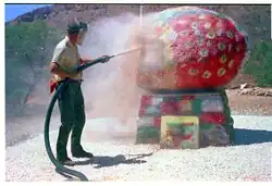 In 1972 four young men, 1 plasterer and 3 bakers, were charged with 'malicious damage to a monument to the dead' following vandalisation of the grave, in the early hours of 1 January, which they covered in psychedelic designs. The then Mayor of Alice Springs, Jock Nelson, called their actions a "completely brainless and stupid act".[6]
