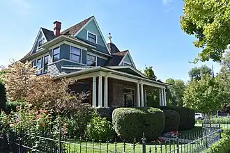 The John Haines House is a 2+1⁄2-story Queen Anne style house in the Fort Street Historic District of Boise, Idaho. Designed by Tourtellotte & Co. and constructed in 1904, the house features a veneer of rectangular cut stone applied to the first story and shingled, flared walls at the second story. Turrets accent the front two corners of the house, and a classical porch with doric columns and a flattened pediment separates the offset main entrance from the street.[2] It was included as a contributing property in the Fort Street Historic District on November 12, 1982.[3] The house was individually listed on the National Register of Historic Places on November 17, 1982.[1]