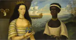 - ^ Friar, Walter (1731) "Portrait of the Princess of Zanzibar with an African Attendant" (inscribed centre left: "JOHN HENDERSON of FORDELL Travelling in his youth thro several parts of Asia and Africa from y 1618 to y 1628 was delivered unto Slavery by a Barbari Prince in Zarquebar on the Cost of Africa where Princefs of that Countrie falling in love with him Even to Renoincing her Religion and Countrie contrived the mians of both their Escape and getting a board a ship trading up y Red Sea landed cam to Alexandre(a) where she died whofe Picture Mr Henderson cauised to take with her black Maid after their oun Country habett from y original Picture at oterston by W. Frier 1731"); "Portrait of the Princess of Zanzibar with an African Attendant".