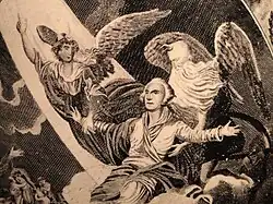 Detail of the Apotheosis of George Washington by John James Barralet, c. 1800–1805, transfer-printed onto a pitcher by the Herculaneum Pottery, Liverpool