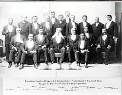 Committee members, selected to present a memorial to U.S. Special Commissioner, James Blount. Kāneakua is seated on the bottom right