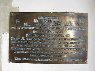 Norwood later achieved the rank of captain[3] before resigning his commission in June 1909,[4] joining the 2nd County of London (Westminster Dragoons) Yeomanry.[5] Posted to France on the outbreak of the First World War, he was killed in action during the First Battle of the Marne at Sablonnieres on 8 September 1914.[6]