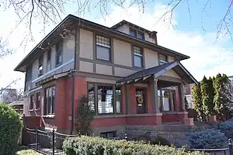 The John Parker House in Boise, Idaho, is a 2-story bungalow designed by Tourtellotte & Hummel and constructed in 1911. The house features a sandstone foundation and brick veneer surrounding the first floor, with a half-timber second floor infilled with stucco. An outset front porch is a prominent feature, supporting a gabled roof by two square posts. The hip roof above the second floor includes a single dormer with battered, shingled sides. The house was listed on the National Register of Historic Places in 1982.[2]