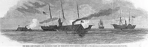 CSS Chicora, with John Randolph Tucker in command, and CSS Palmetto State attacking Union warships in Charleston Harbor, January 31, 1863