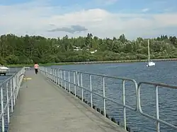 Juanita Beach Park is a 22-acre (8.9 ha) waterfront park located on the northeast shore of Lake Washington in the Juanita neighborhood, managed by the city of Kirkland, Washington in the United States. It was historically the home of several popular private beach resorts before their purchase by the public in 1956. The park straddles thoroughfare Juanita Drive and features a number of amenities, including a pier, a playground, bathhouses, and athletic facilities.[1] It is the busiest waterfront park in Kirkland's recreation system.[2]